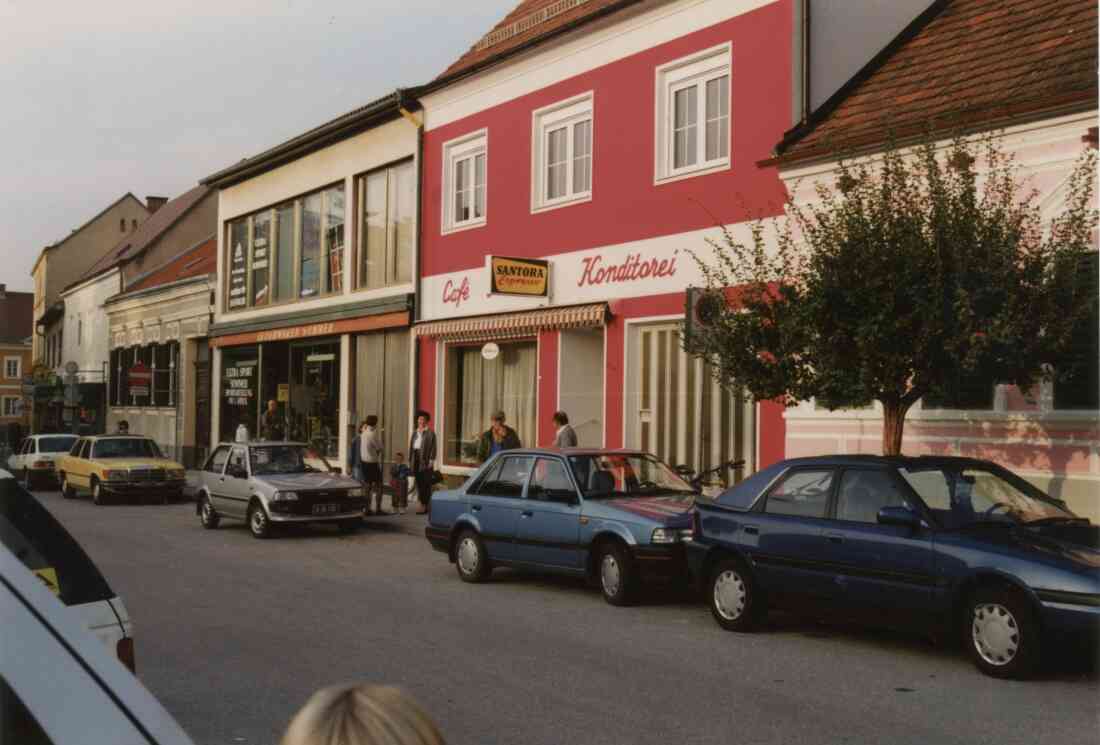 Lederwaren und Sport Sommer, Cafe Konditorei Friedl am Hauptplatz im Jahr 1992